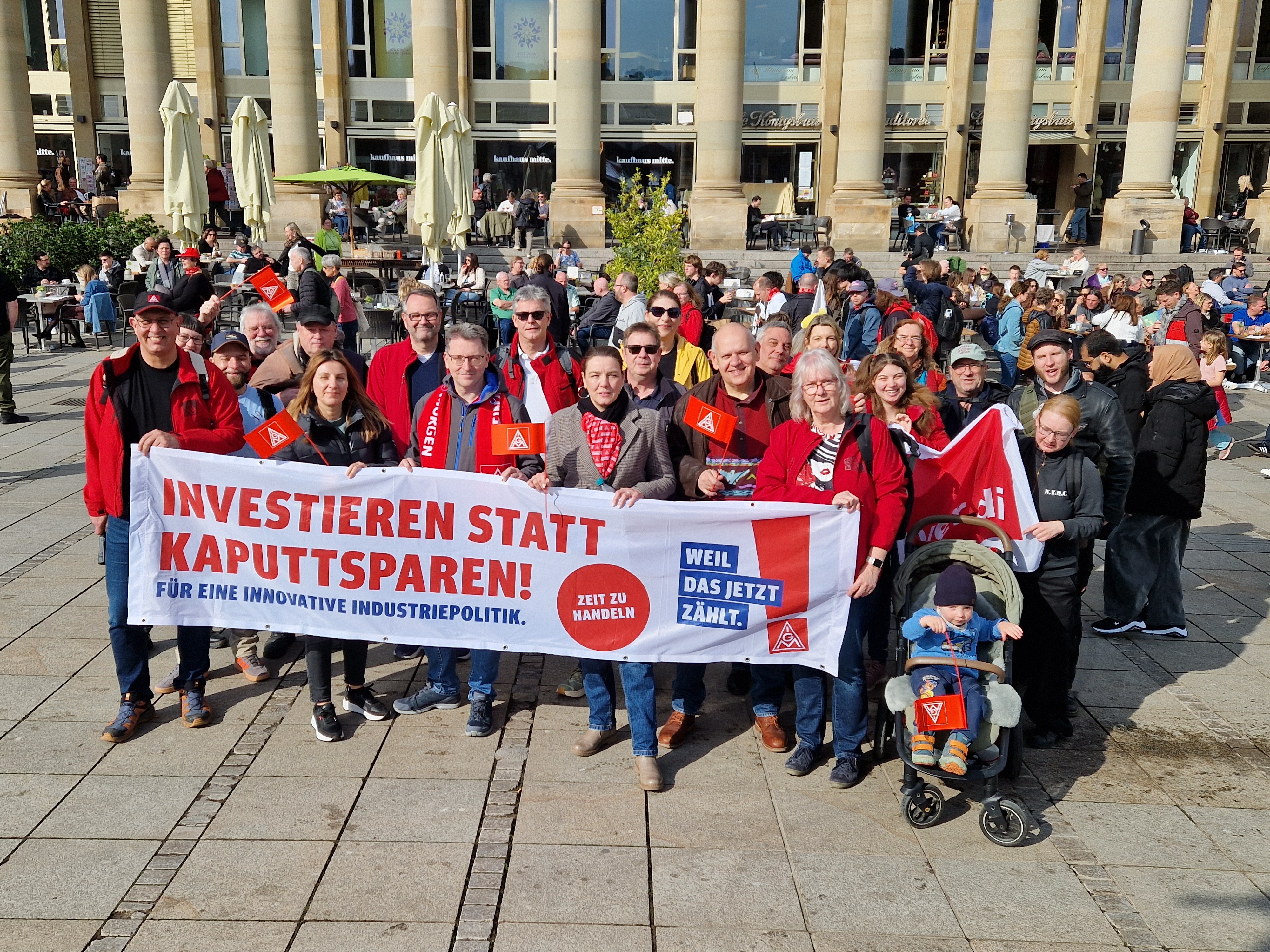 Wir brauchen eine Politik, die Sicherheit schafft - für Beschäftigte, für Kommunen und für den Industriestandort Baden‑Württemberg. Unsere Jobs sind wichtiger als eure Profite!"