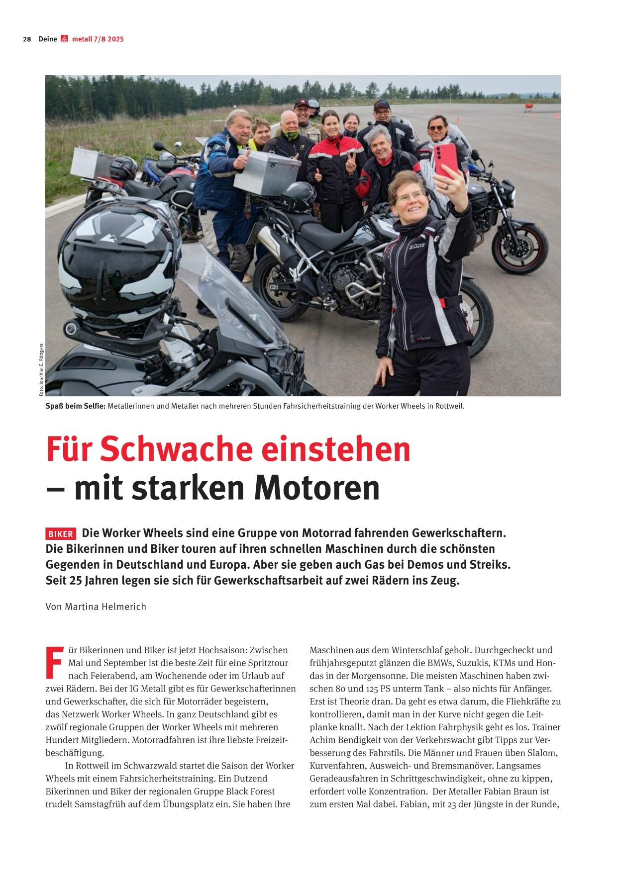 Die Worker Wheels sind ein deutschlandweites Netzwerk von motorradbegeisterten Gewerkschafterinnen, das seit 25 Jahren für Solidarität, Gemeinschaft und politische Teilhabe steht.